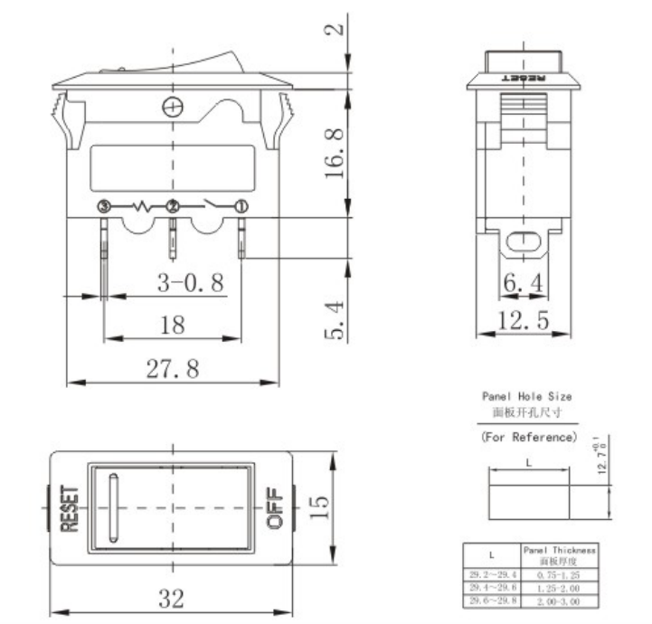 額定電流(rating):3A-16A 輸入電壓(Input Power):125VAC/250VAC/50VDC 50-60Hz 耐電壓強度(Withstand voltage strength):1500VAC/1min 漏電電流≤0.5mA(1500VAC/min,the leaked current is less than≤0.5mA) 絕緣電阻(Insulation Resistance):500VDC1Min≥100MΩ 額定短路能力(Rated short-circuit capacity):125VAC/1000A,250VAC/1000A 額定通斷能力(Rated breaking capacity):6倍額定電流(6 times rated current) 復位方式(reset):手動復位(Manual Push Reset) 復位時間(Reset Time):60s"內回復(Within 60s") 脫扣特性(Tripping characteristics) 測試環(huán)境溫度(The test environment temperature):25℃±3℃ 額定電流200%(200% of Ratcd Currcnt):5-30s" 內脫扣(5-30s" Seconds Trip) 額定電流150%(150% of Rated Current):一個小時內脫扣(Trip within 1 Hour) 額定電流100%(100% of Rated Current):保持不脫扣(Hold,No Trip) |